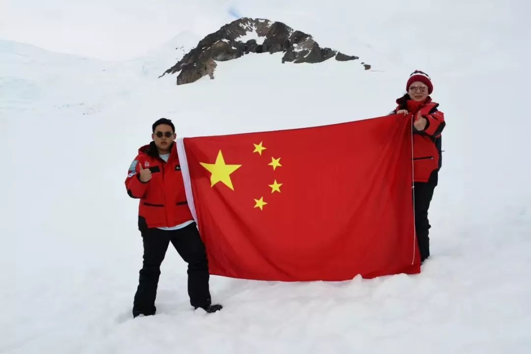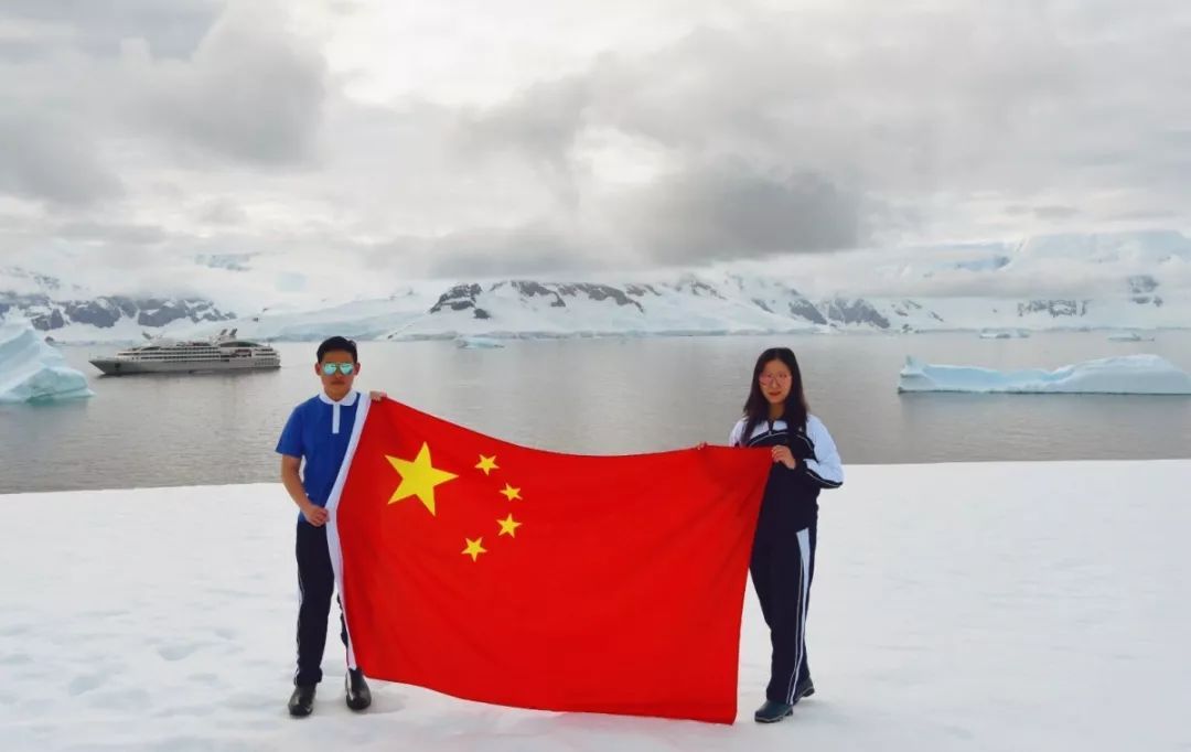 照片中,姚静身穿深圳学生冬装校服,儿子何浩天则是身穿夏装短袖和长裤,他们手持国旗在冰天雪地中合影,自豪和激动之情隔着屏幕都能感染很多人。而此时,他们身处的南极大陆温度在零下4-5度左右。