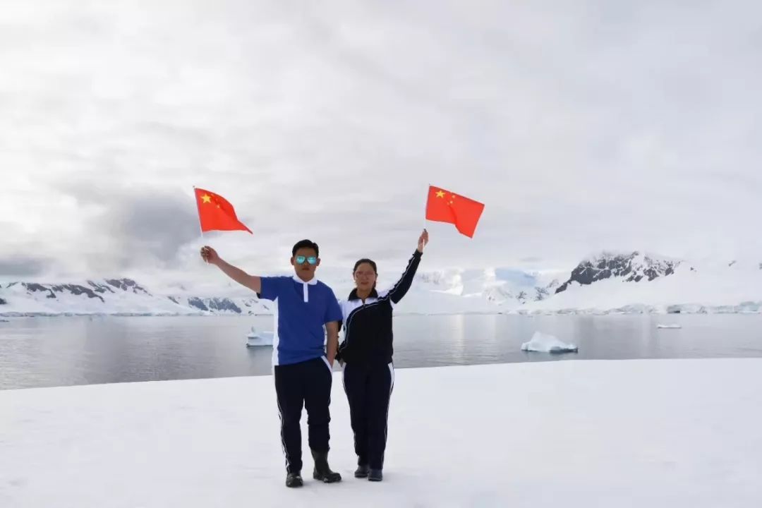 当地时间2月8日下午6点,姚静和儿子何浩天成功登上南极大陆。