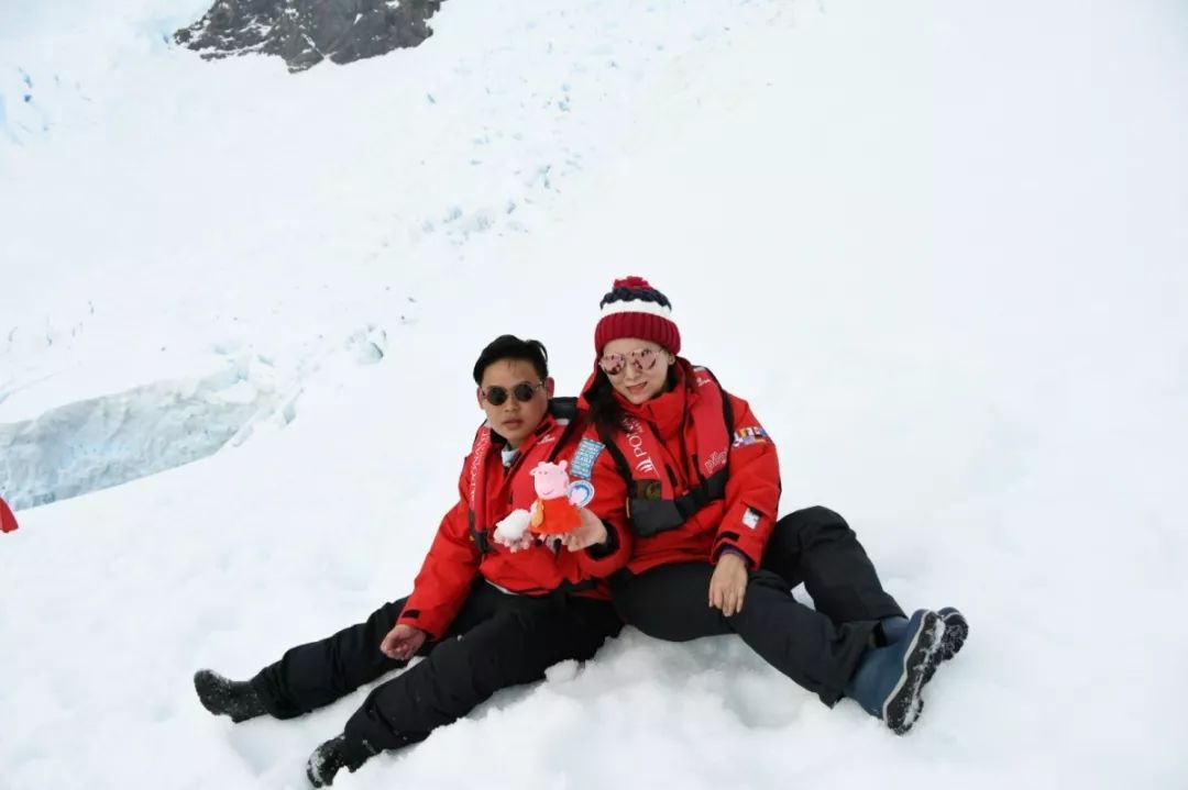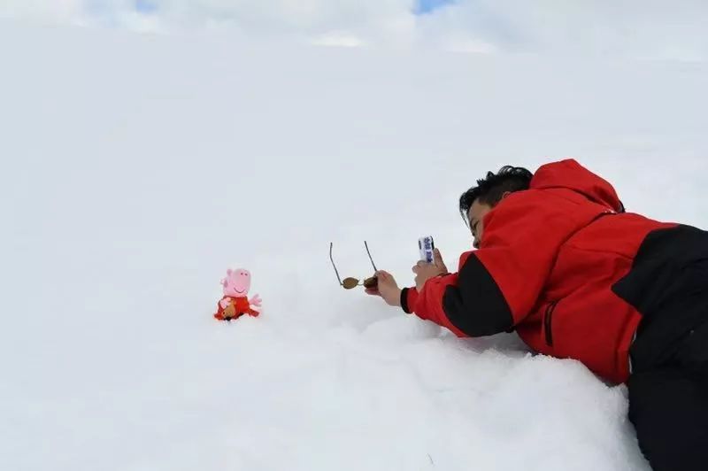 比较惊喜的是,在他们晒出的南极旅行照片中,记者还发现了火遍网络的佩奇的身影,姚静和儿子在南极冰雪上和一个佩奇公仔拍了很多照片。