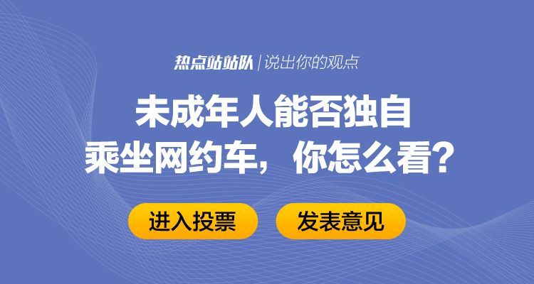 日前,滴滴出行针对“未成年人独自乘网约车”话题征集意见与建议。滴滴称,针对未成年人安全出行的提醒、确认措施上线后,得到不少家长的认可,但也有部分家长与未成年人的需求并未得到满足。那么,未成年人能否独自乘坐网约车?欢迎戳下图投票,并发表你的看法!