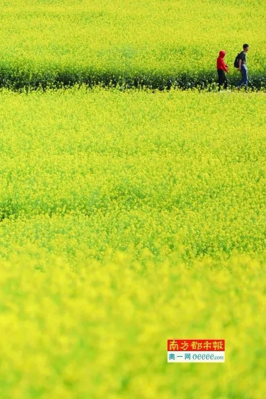 深圳光明小镇花海,1000亩金黄油菜花成片分布,气势壮观。5月将换上向日葵。南都记者 胡可 摄