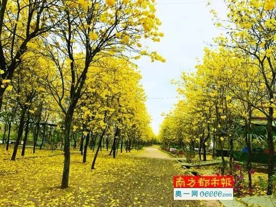 今年“网红花”黄花风铃木开得特别早,又惊艳了惠州。 惠州沙澳金鱼嘴花木场100亩约有3000-5000棵风铃木,眼下,黄花风铃木正值花期,满树的黄金甲美极了。游人无不惊叹,纷纷驻足拍个不停。 惠城区政府旁湖边、菱湖路段等几地也藏着黄花风铃木。需要提醒的是,黄花风铃木花期很短,可能只有一周,错过了就要等下一年了。南都记者 黎秀敏 摄影报道