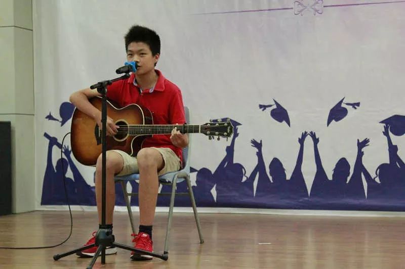 张轩溢在初中毕业典礼上弹唱