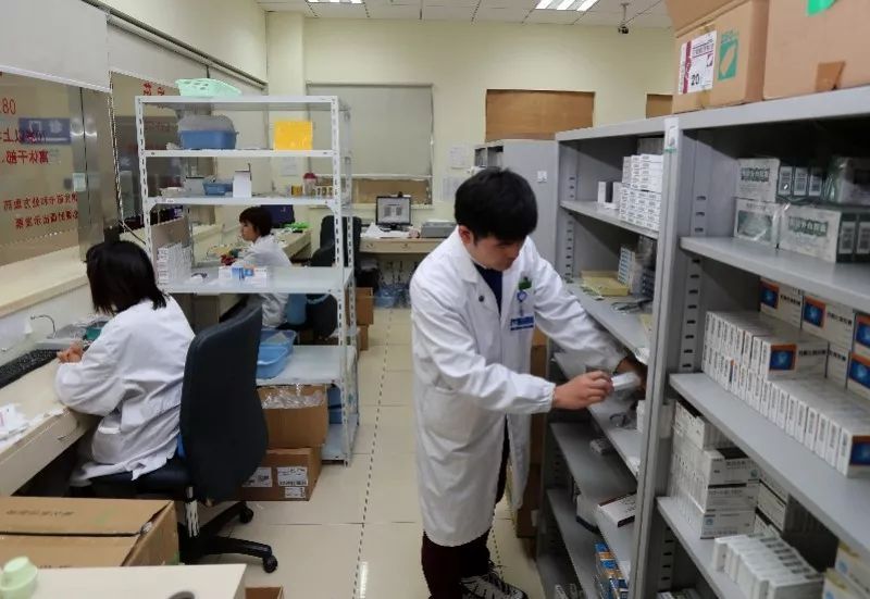 新华社照片。上海市胸科医院的门诊药房(4月11日摄)