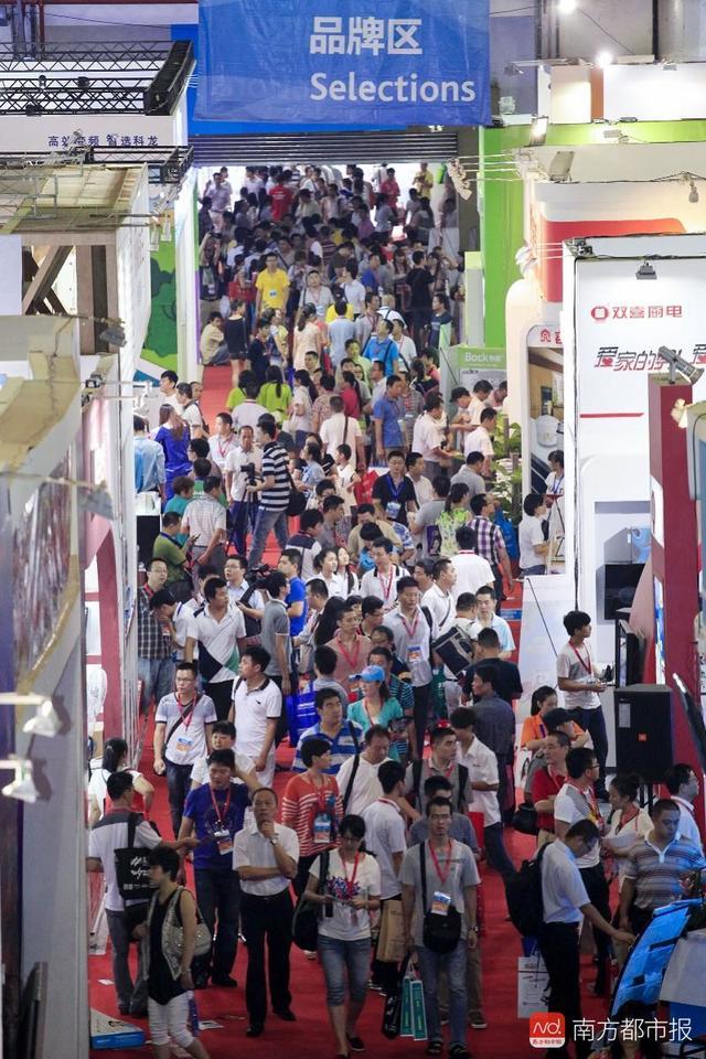 “中国顺德国际家电博览会、中国慧聪(顺德)家电交易会、中国(顺德)工业设计博览会”在顺德展览中心开幕时,现场人山人海。南都资料图
