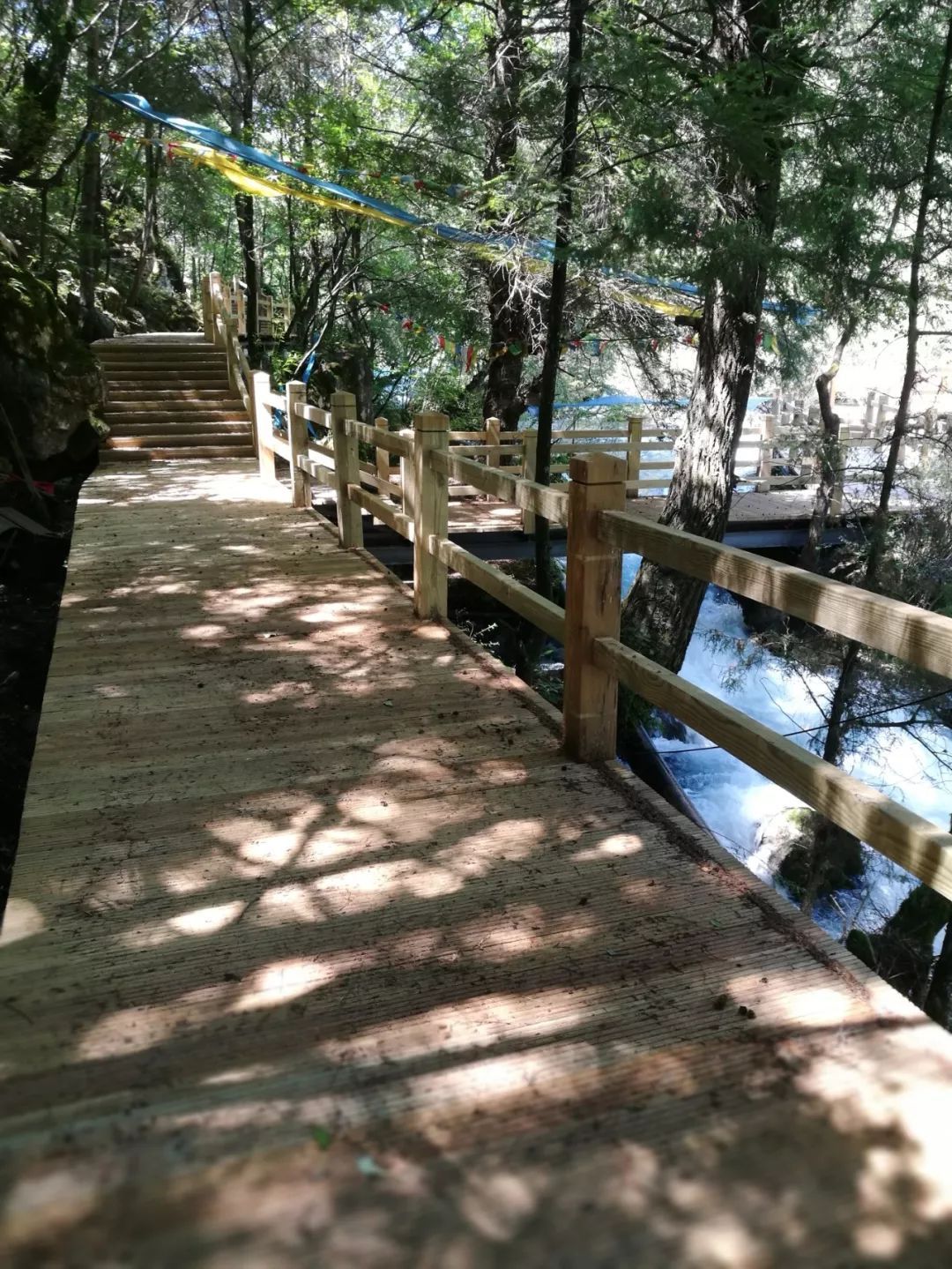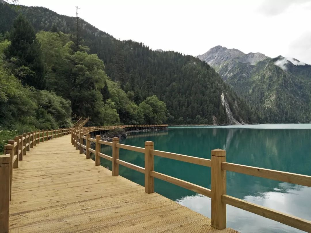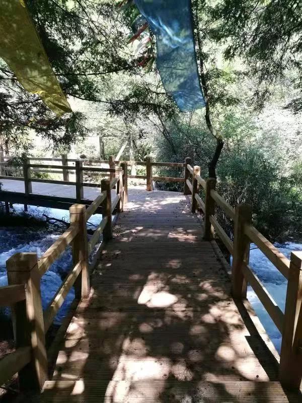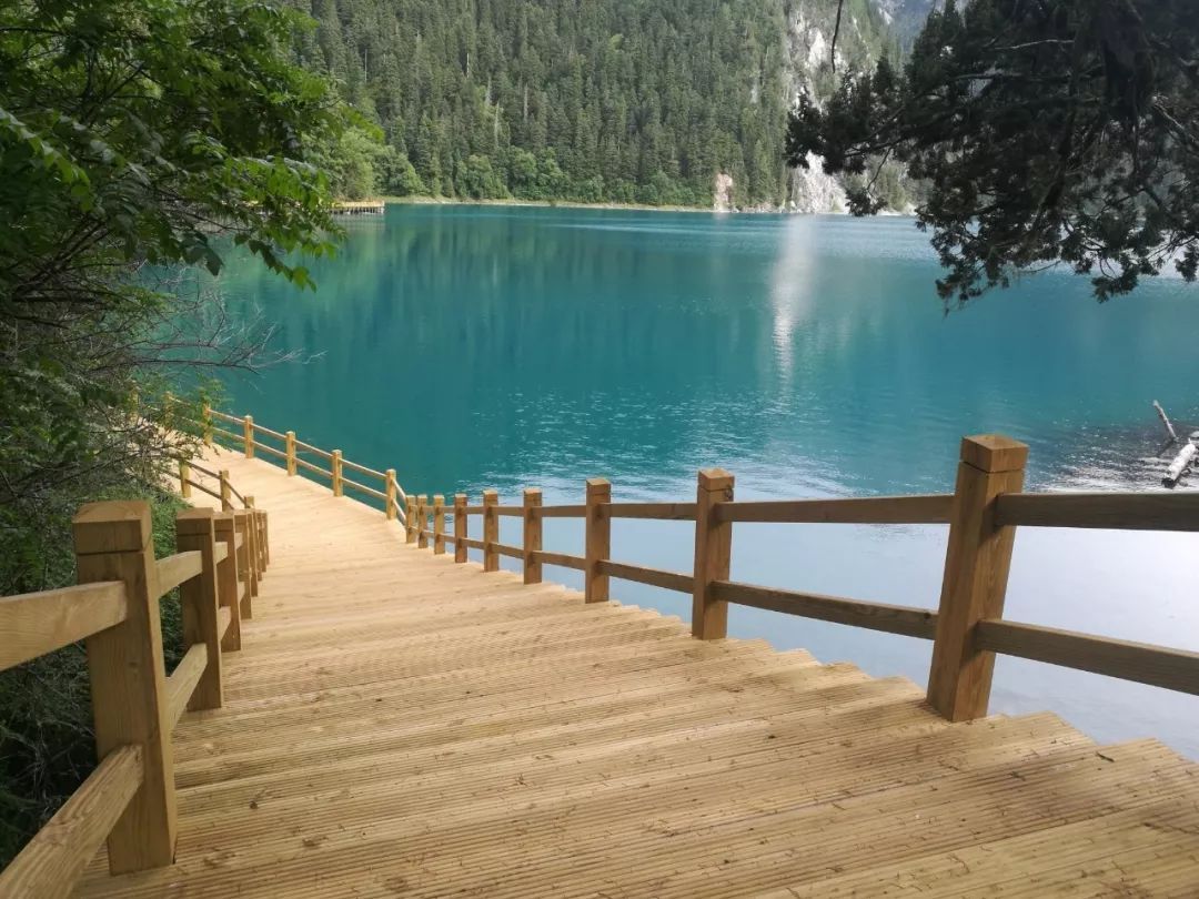 2019年7月 铺设完毕的全新生态栈道铺设完毕的生态栈道,结合了九寨沟的自然地形,“以景定道、以道串景”模式,让游客的旅行体验更加舒适便捷。同时实现了景区人车分流,