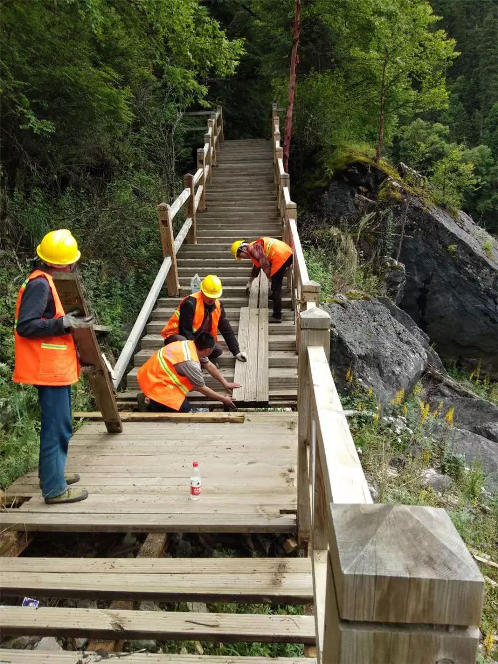 为有效保护生态环境,改造升级栈道采用与景区自然环境相协调的H型钢和美国南方松等环保材料和新技术;