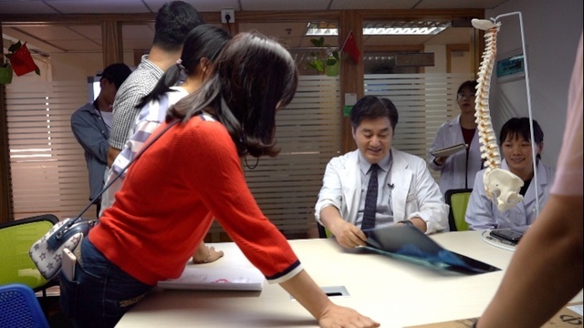 “你为什么想手术?为什么不保守治疗?”诊室里,15岁的小刘的脊柱侧弯已经接近国际手术标准范围,但在杨军林的治疗体系中,保守治疗还是可以有明显的效果,但小刘却不愿意保守治疗。两年前,他查出脊柱侧弯,做了两年不规范的支具治疗,不但没治好,病情反而还在加重,给他留下了心理阴影。不过,最终在杨军林的劝说下还是决定接受正规的保守治疗。