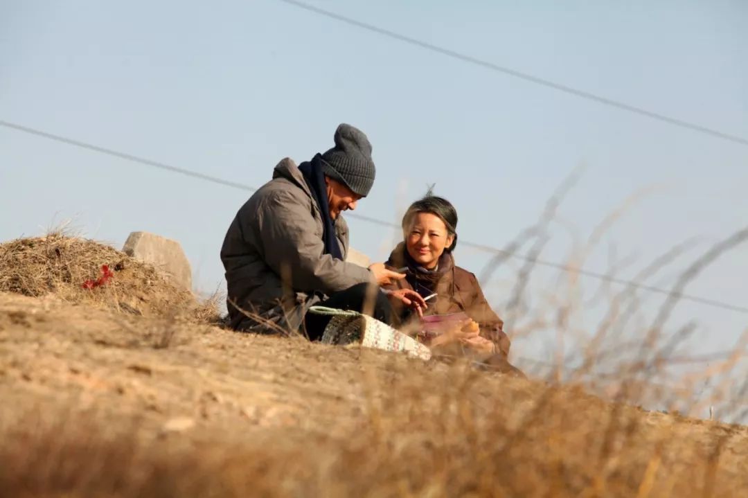 还有一场戏,老夫妻爬山上坟。两人烧好纸坐下来休息,咏梅从包里掏出一瓶水,开盖准备喝。这是导演的规定动作,在他的经验里,老年人远行的习惯就是备一瓶水,自己喝一口,老伴喝一口,喝了马上盖好放回去,不像年轻人那样随便扔掉。水没喝完,就得背着带回家。