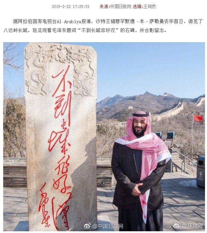 前几天,沙特王储穆罕默德·本·萨勒曼访华的消息轰动了朋友圈,王储游玩八达岭长城并和“好汉碑”合影的照片视频也在微博上广为流传。
