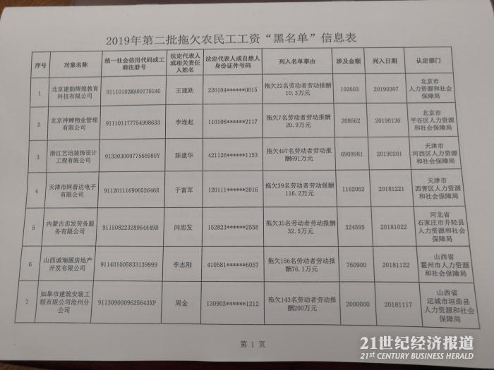 记者查询发现,深圳南岭玩具制品有限公司、重庆市德感建筑安装工程有限公司、中科建设开发总公司,拖欠农民工工资上千万元。