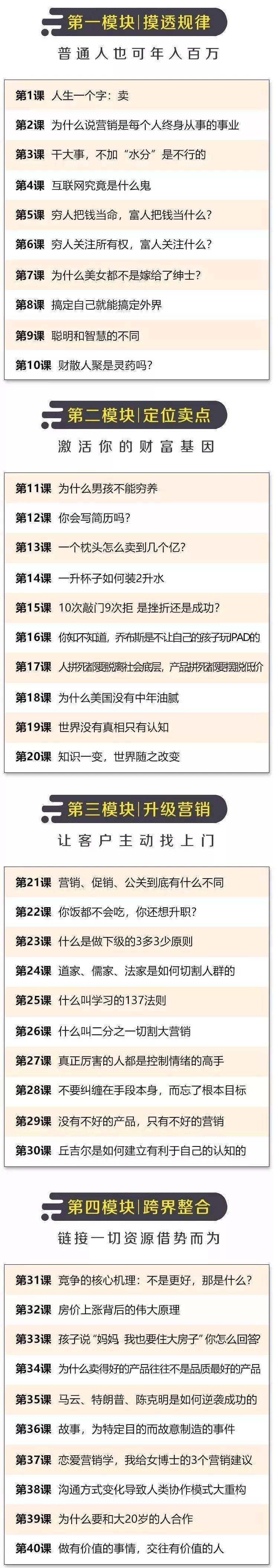 不去北大清华,40节课程,每天10分钟,让你学会200个营销秘籍,演绎一个个以小博大的鲜活例子,改变命运。