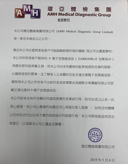环亚表示,5月10日公司强调提供的九价疫苗均由默沙东药厂生产,以恰当的方式运动和储存。并称从未收到过任何顾客有关注射HPV九价疫苗后感到不适的投诉。