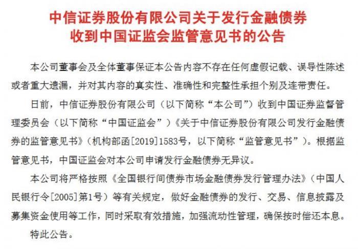 6月26日,中信证券、国泰君安、华泰证券、中信建投证券、申万宏源证券、广发证券、招商证券等多家头部券商发布公告称,已收到中国证监会监管意见书,对公司申请发行金融债券无异议。