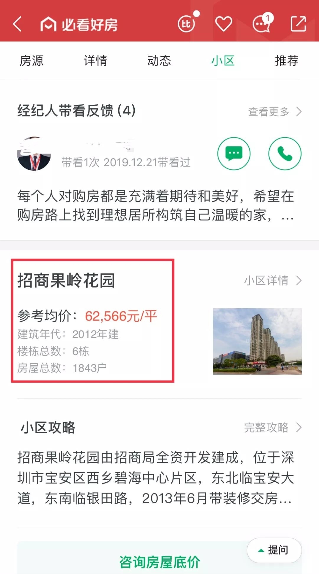 而在链家APP上却查不到深圳各个小区二手房的成交历史了,只有该小区的参考均价。