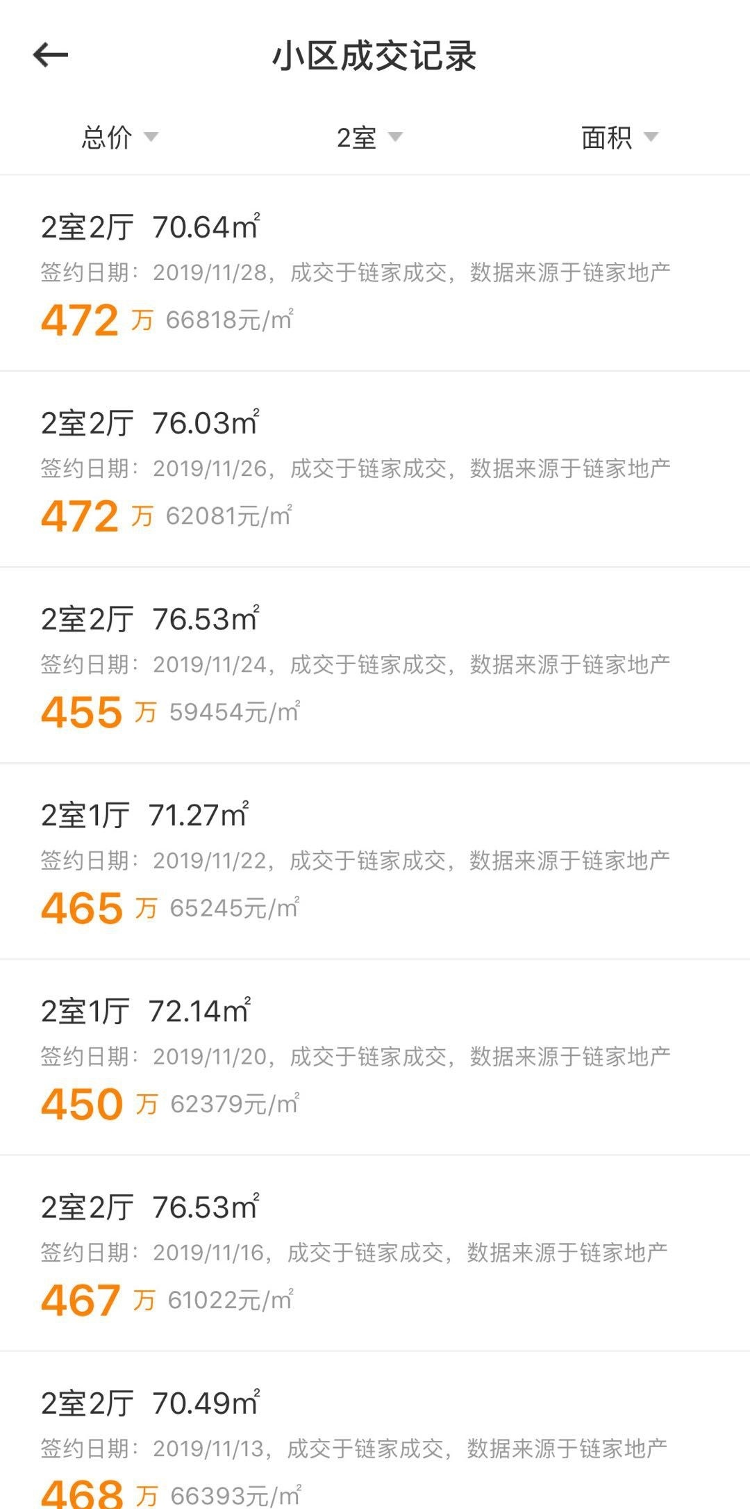 点开上图的“历史成交”后,可以显示该小区的历史成交价,如下图:
