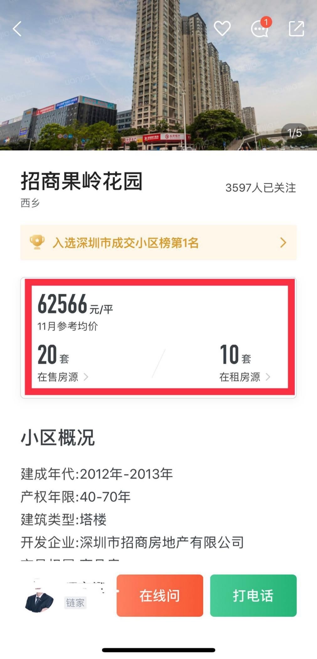 如北京二手房成交小区榜第一名的小区,在链家APP上显示出来是这样的: