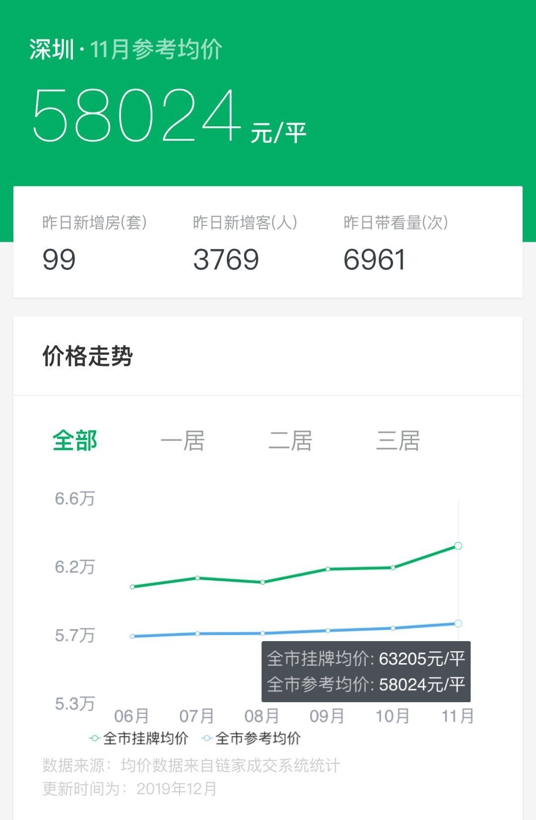 券商中国记者从链家APP上看到,深圳全市二手房市场11月的参考均价为58024元/平方米,而当月挂牌价为63205元/平方米,挂牌价比参考均价高出5181元/平方米,而均价数据来自链家成交系统统计。