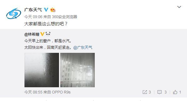 答:“回南天”并非广东独有,我国南方地区都会出现这种现象。主要原因是冷空气影响过后,突然间转为暖湿气流控制,气温快速回升,空气湿度较大,且露点温度比物体温度高,物体表面就会出现水汽凝结现象,也就出现了“出水”现象。