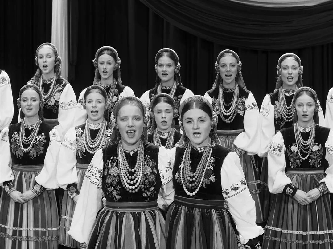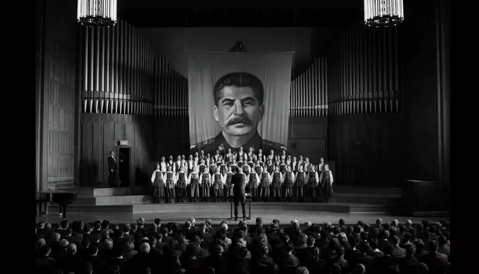 有意思的是,导演用了处理人物角色的手法来处理民歌这一隐喻性的元素。它源自土生土长的波兰乡村小姑娘的口中;在高压政治时期,它被官方征用成,被编排成效忠斯大林的的民族大合唱;