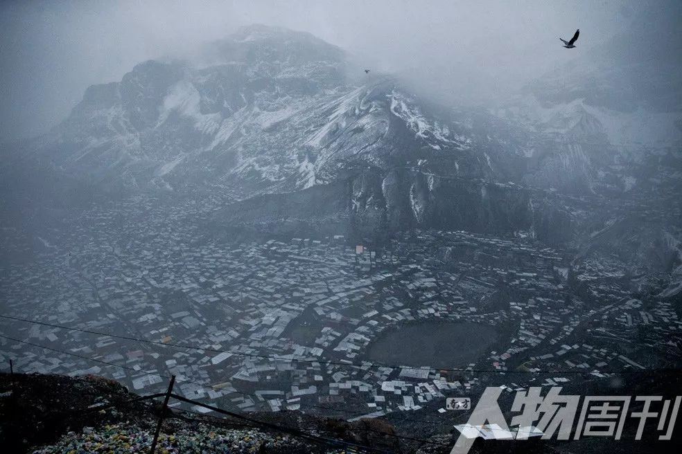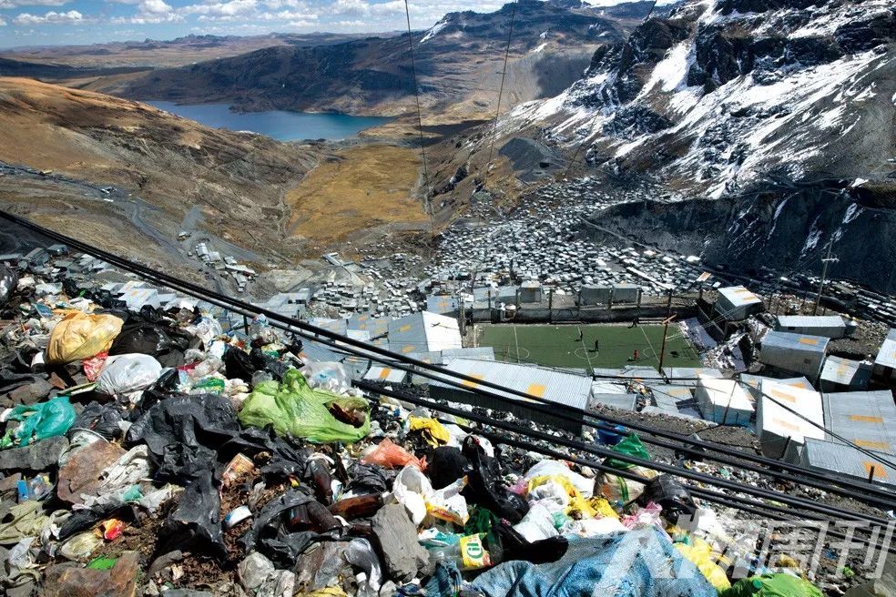 拉林科纳达,淘金人居住的棚屋围绕着一个满是汞污染物的废水池。这个海拔5100 米的城镇是世界上最高的永久定居社区,五万淘金人聚居于此,但基础设施落后,没有排水和卫生系统