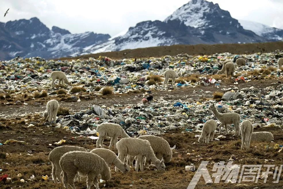 羊驼在垃圾堆里觅食