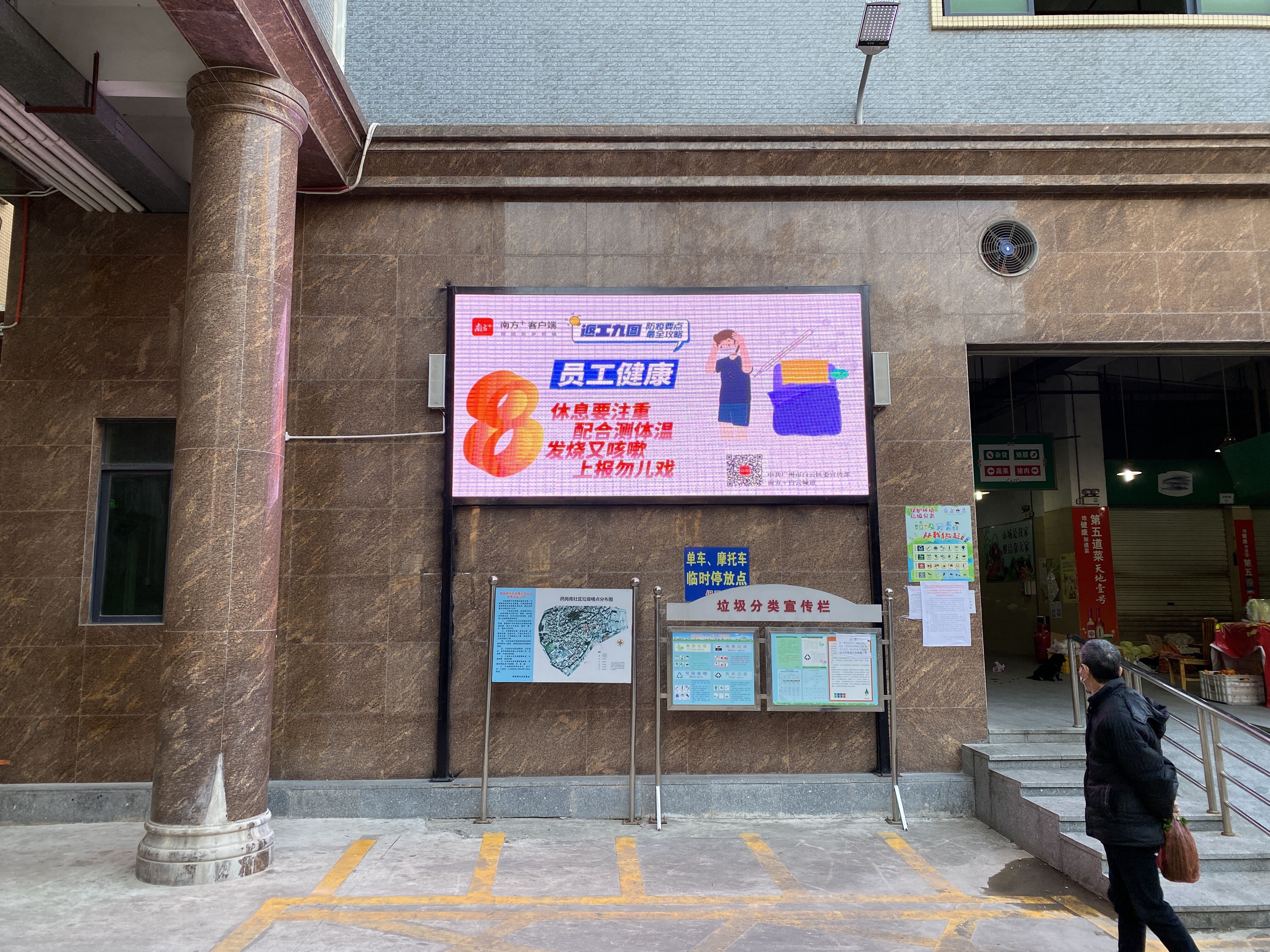 “采购戴口罩,尽量避人群,保持一米距,快去也快回。”在白云区安华汇商业广场,LED屏幕上醒目的“返工九图”引起路人驻足观看。“非常简单明了,现在要上班了,要让每个人都自觉做好防护,多一点这样的提醒很有必要。”刘小姐在附近的公司上班,对“返工九图”点了赞。