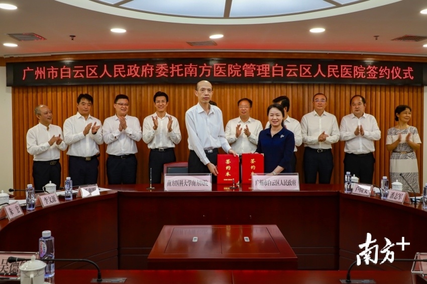 广州市白云区的医疗卫生服务水平正快速提升。继2020年5月25日广州市白云区政府正式委托广中医一附院管理白云区中医医院共建紧密型医联体后,2020年5月28日,白云区人民政府再度与南方医科大学南方医院(以下简称南方医院)签约,由白云区政府委托南方医院管理白云区人民医院,建设紧密型医联体。