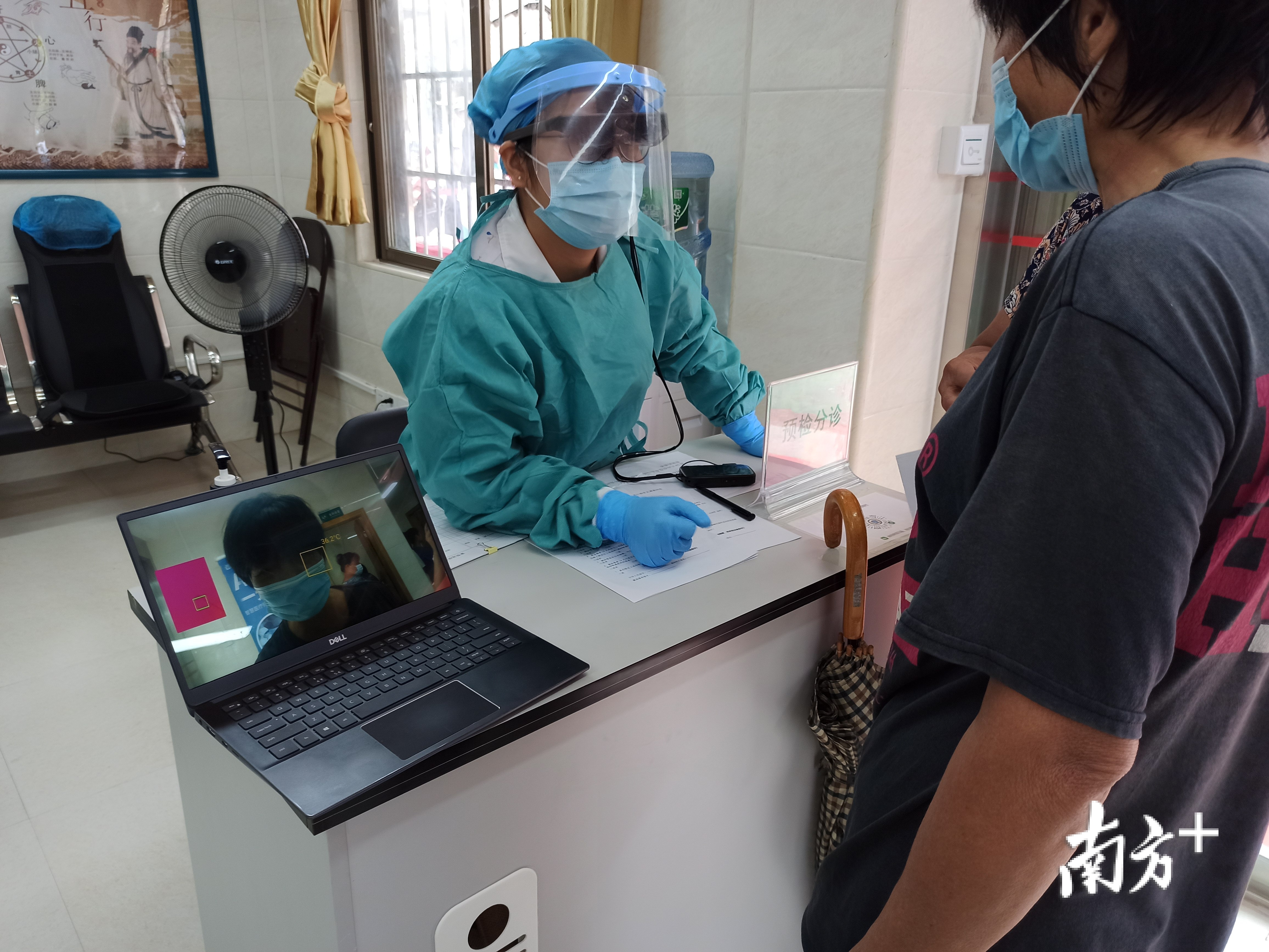 大石岗村中心卫生站还引入智慧人脸识别技术,通过前期签约数据采集,村民只需站在识别区,系统能识别人脸判断村民是否为签约“一元钱看病”项目的村民。运用AR眼镜技术,让预检分诊人员更直观地看到村民体温是否异常,在新冠疫情防控常态化下有效地做到预防。这次人工智能技术与卫生站结合,在白云区甚至是广州市内都是走在前列的。