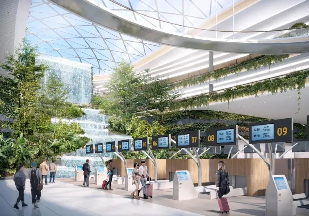 此次扩建工程最引人瞩目的莫过于T3航站楼,据设计方介绍,T3航站楼造型上收窄了东西两翼,使其看起来像一座地面上的“木棉花”。“我们用了‘羊城花冠’这一建筑意象,这也非常匹配白云机场作为广州门户的形象。” “木棉花”的设计也有利于缩短旅客从T3航站楼中央区域至四个指廊登机口及中转流程的平均步行距离,既满足旅客快捷乘机的需求,也提升了旅客候机乘机的舒适度。T3航站楼还将同步引入穗莞深城际、广河高铁、广中珠澳高铁和地铁22号线北延段(芳村至白云机场城际铁路),结合T1、T2航站楼现有地铁3号线北延线,将实现从白云机场20分钟内到达广州火车东站、广州白云火车站以及琶洲地区,30分钟内通过高快速路到达老城区和天河中心区,快速接驳大湾区及省内城市。