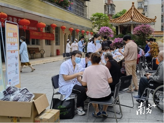除了根据军休干部的特点和喜好举办麻将比赛、门球比赛等文体活动,针对军休干部普遍年龄偏大、身体状况欠佳的实际情况,为了切实把系列活动开展得既深入细致,又扎实有效,结合“我为群众办实事”实践活动,白云区退役军人事务局协调各方机构到军休庭院开展“上门服务”,不断丰富“敬老月”尊老敬老的氛围。