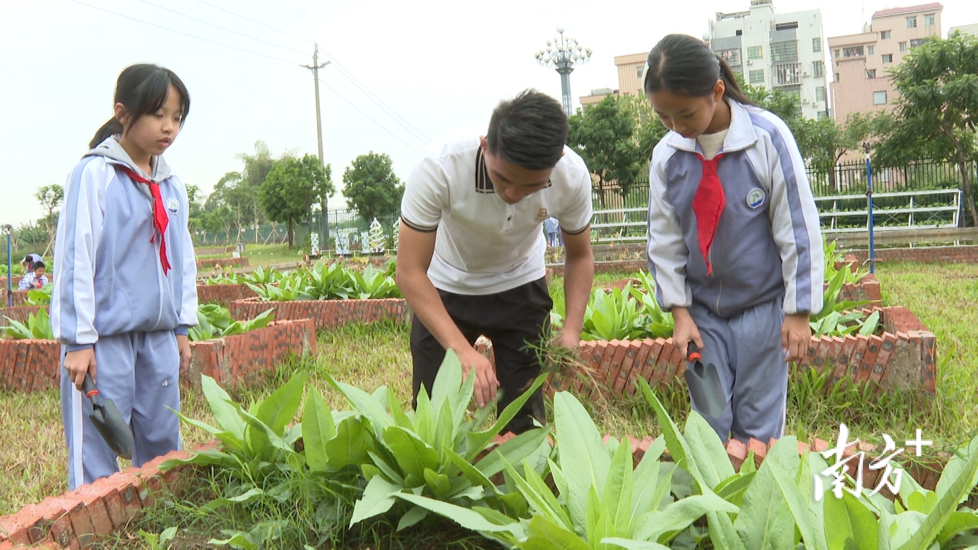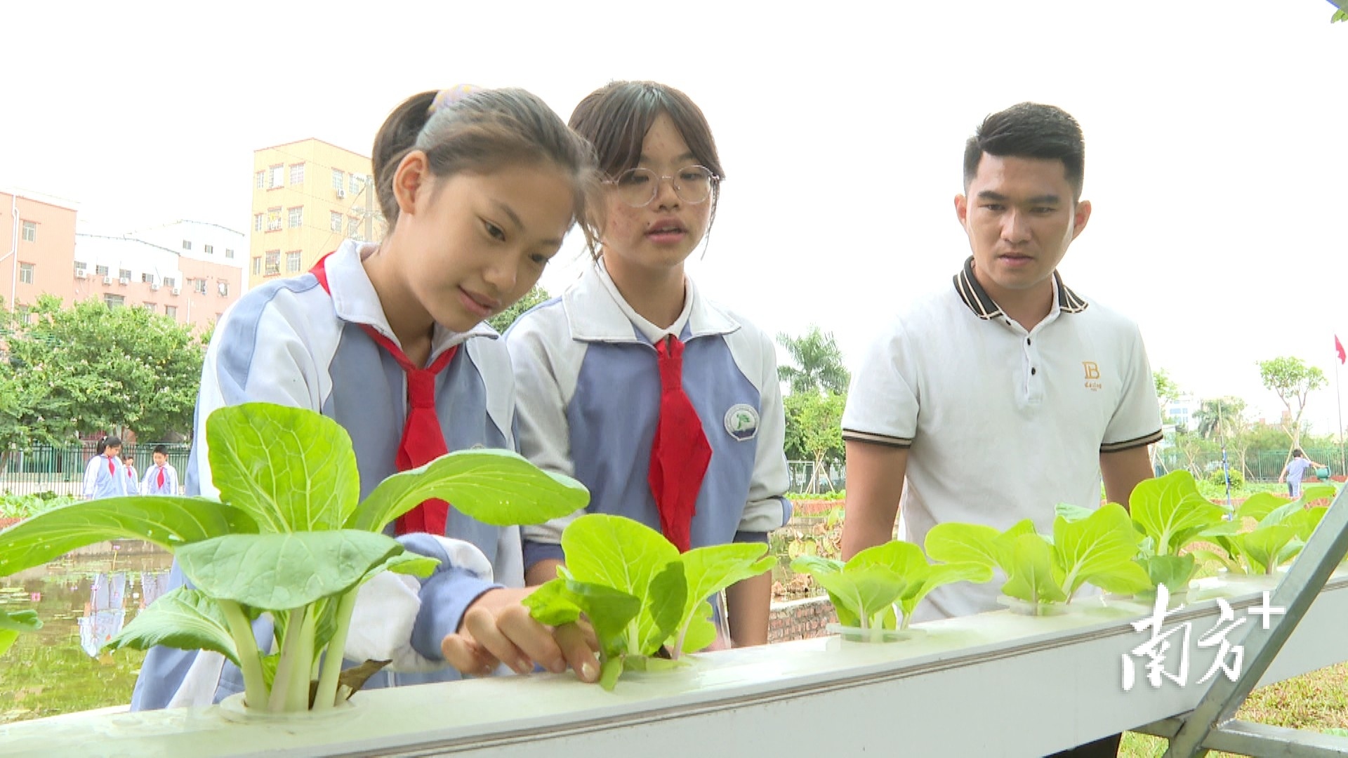 “农业科普园分为科普区、种植区、活动区。每学期,每个班级每周都有两节综合实践课,我们就利用其中一节课,用于学生的综合劳动教育。”嘉龙小学德育处主任龙俊南介绍,盘活这块土地,不仅解决了学校多年来的难题,也打造出了白云区第一个以“生态+教育+N”为新模式的户外教学品牌课程。