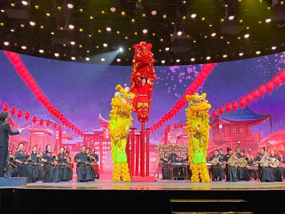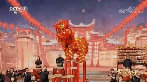 舞台上,醒狮一跃而上,身姿轻盈,耍出十八般武艺,踢跳翻蹬,立卧滚抖,醒狮队员在高低起伏的梅花桩上腾空跳跃,把醒狮的威猛表现得淋漓尽致,舞出了新春的吉祥,醒狮在节目中大放异彩……