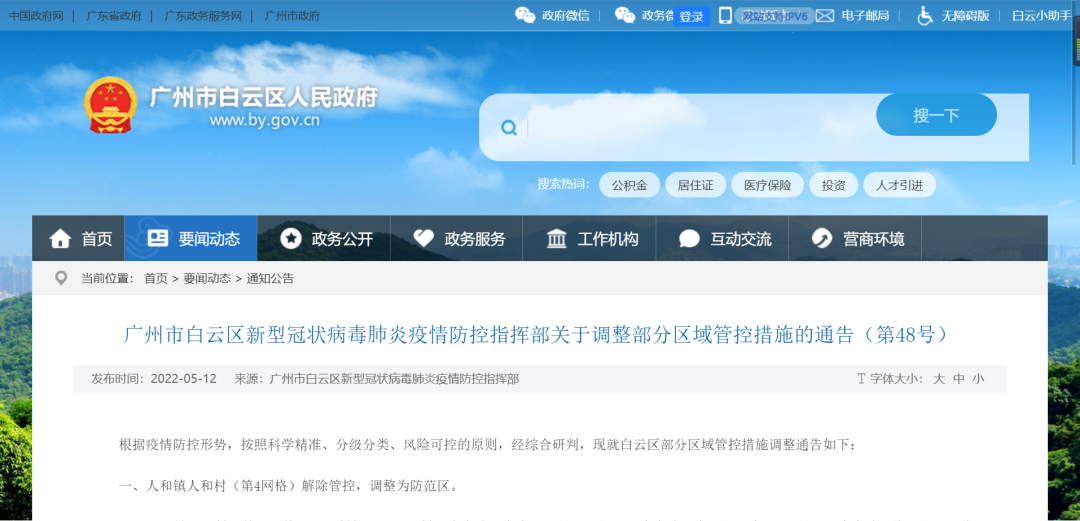 广州市白云区新型冠状病毒肺炎疫情防控指挥部关于调整部分区域管控措施的通告(第48号)