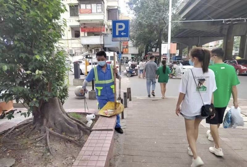 来自广西的卓建志是白云区城市管理和综合执法局巡察组的副组长,他每天都需要对各个班组负责的区域进行巡查,检查各个路段的保洁情况。在别人看来难以察觉的死角位垃圾,却总是逃不过他敏锐的眼睛。路上遇到堵塞的沙井口、被随手丢弃的水瓶时,他总是第一时间拿出扫帚、夹子等工具进行清理。除此之外,卓建志还需要定期对环卫工具房内的消防设施进行检查,并且监督班组人员树立安全生产的意识。