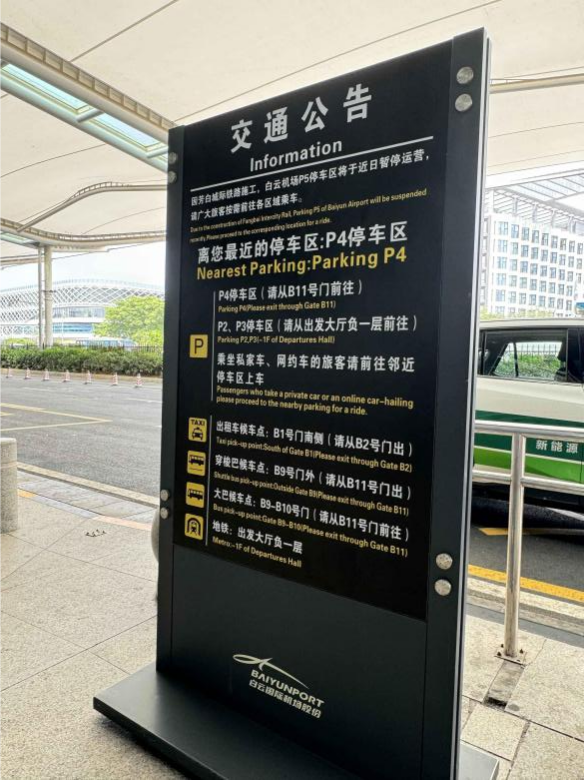 因芳白城际轨道施工占用,白云机场P5停车区将于8月26日10:00起进行功能调整,由停车区调整为出租车上客区,暂时取消车辆停放功能。