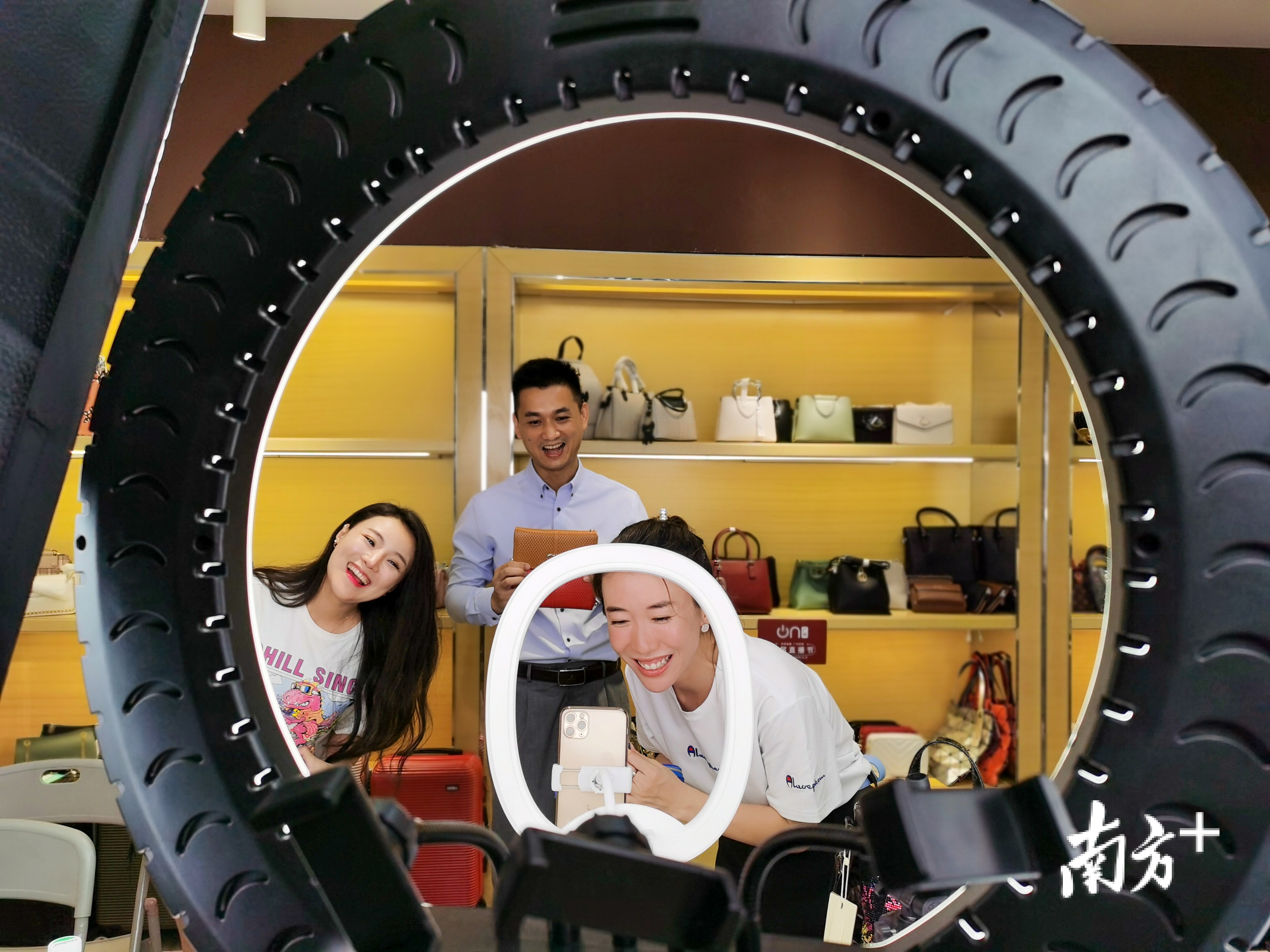 “5-4-3-2-1,上链接!”6月6日晚,在广州首届直播节狮岭镇分会场直播间里,“罗厂长”正卖力吆喝,围观粉丝数和销售额一路飙升,3个小时的直播,卖出的箱包达600多个。当晚,像“罗厂长”这样的狮岭本土网红主播齐上阵,如奥维拉皮具公司的主播“嘟嘟”,每场直播围观粉丝基本保持在2万人,呈相传媒培养的网红主播“叶泳琳”也在业内小有名气。