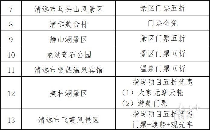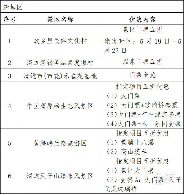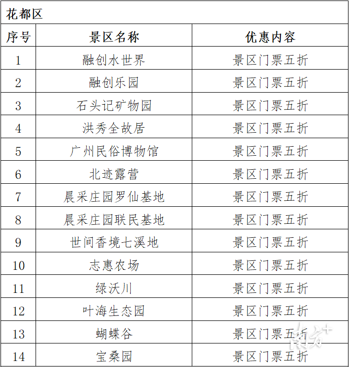 今年,花都区联合清远市清城区共同打造文化旅游欢乐周活动,为两地市民带来丰富的文旅活动和产品。花都、清城联合推出“花清联游”旅游惠民政策,即日起至5月31日,两地共27家景区推出门票和景区指定项目半价或免费优惠,两地市民只需凭身份证、市民卡、社保卡、居住证、驾驶证(五证选一),就可在景区的人工售票窗口购票时享受优惠政策。