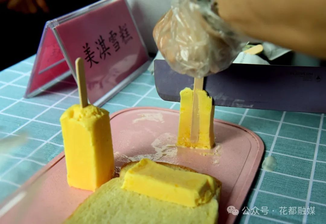 食客李小姐说:“挺好吃的,我吃的是榴梿芒果味,夏天吃很清爽,而且面包夹雪糕的吃法,我也是第一次尝试,觉得挺新奇特别的。”