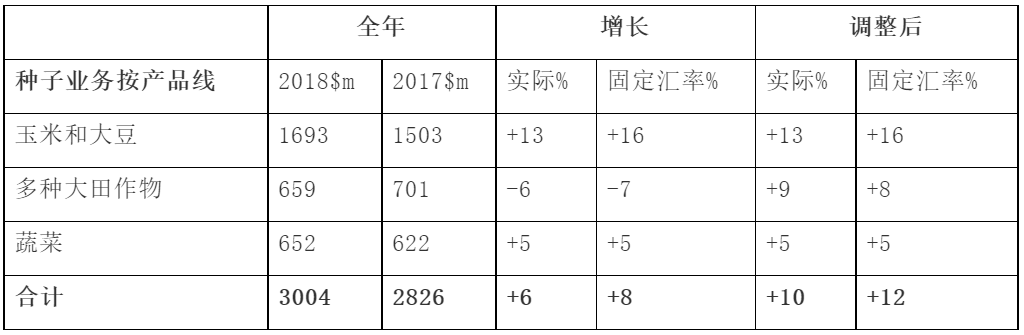 种子:销售额增长6%,不包括甜菜资产剥离,则增长10%