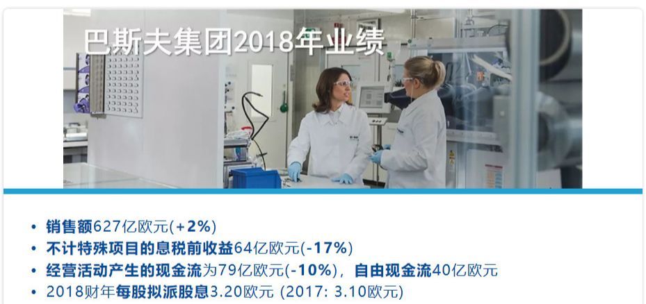 今日,巴斯夫发布2018年业绩报告,全年销售额达627亿欧元,同比上升2%。