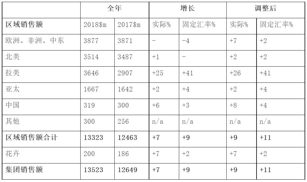 2018年销售额达627亿欧元,同比上升2%
