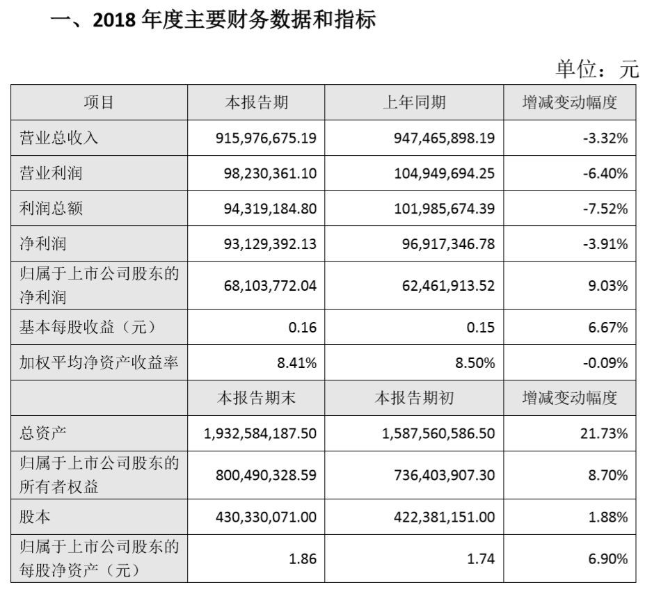 2018年营业总收入9.16亿元,利润总额9431.92万元