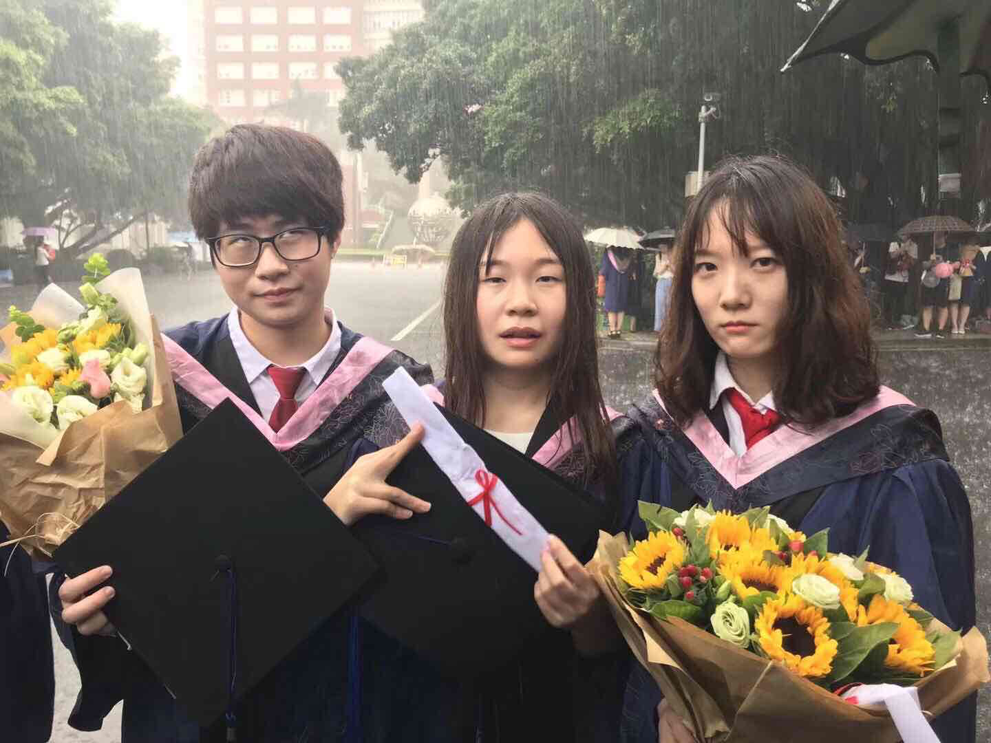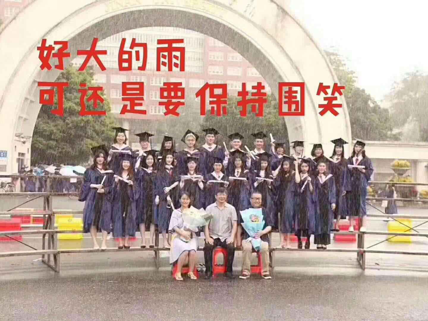 原来,这是一场大雨与毕业照的完美邂逅。