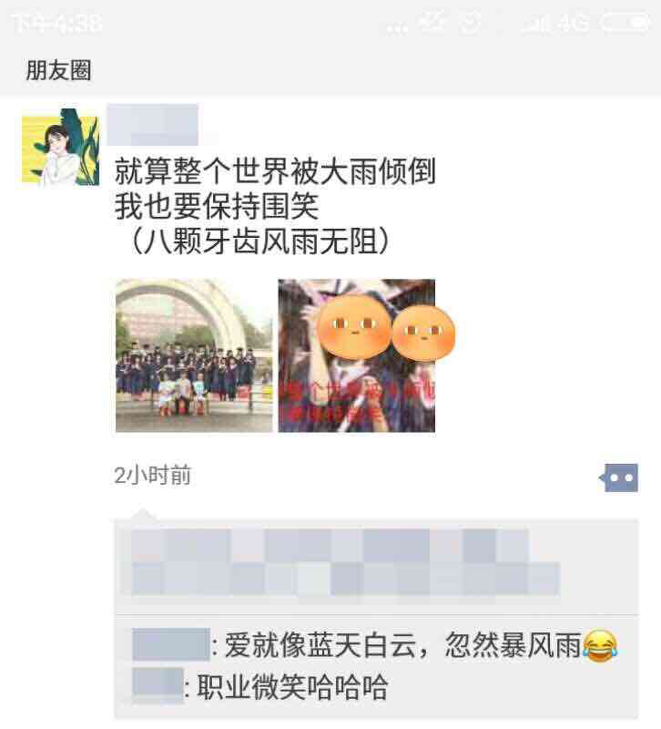 有同学用手机拍到这一场景,将躲雨场景与没下雨之前的毕业照场景剪辑起来,并配上“爱就像蓝天白云,晴空万里,突然暴风雨”的背景音乐,发到了抖音和朋友圈,被大家刷屏。