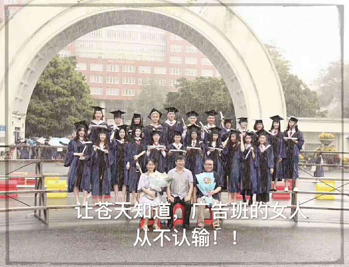 今早,暨南大学新闻与传播学院2018届毕业生迎来了毕业照。9时许,在广告系毕业生拍摄时,天空突然下起了雨。即使在风雨中,广告系的师生们也岿然不动,完成毕业照的拍摄。