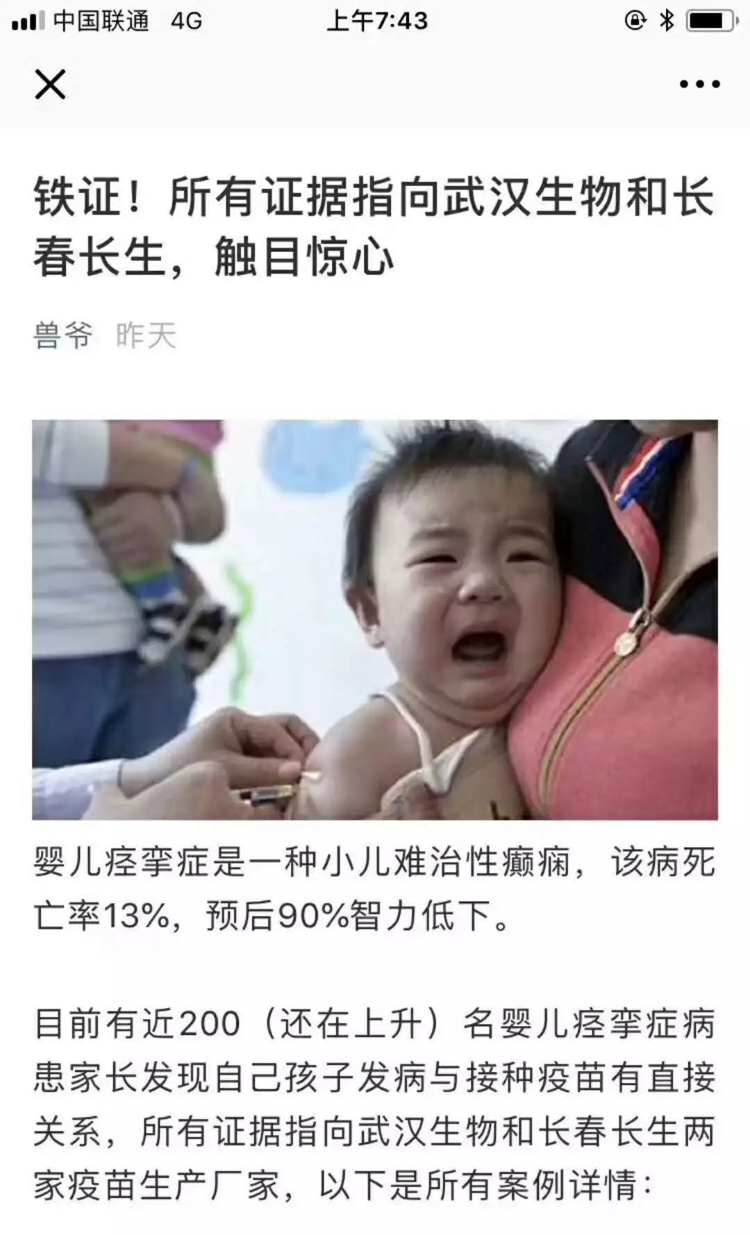 这篇刷屏文造成的恶劣影响可能一时难以清除干净,帮帮提醒大家!目前国内外的众多研究结果也表明婴儿痉挛症和疫苗接种没有关系!请大家不要恐慌,该打的疫苗还是要打的。