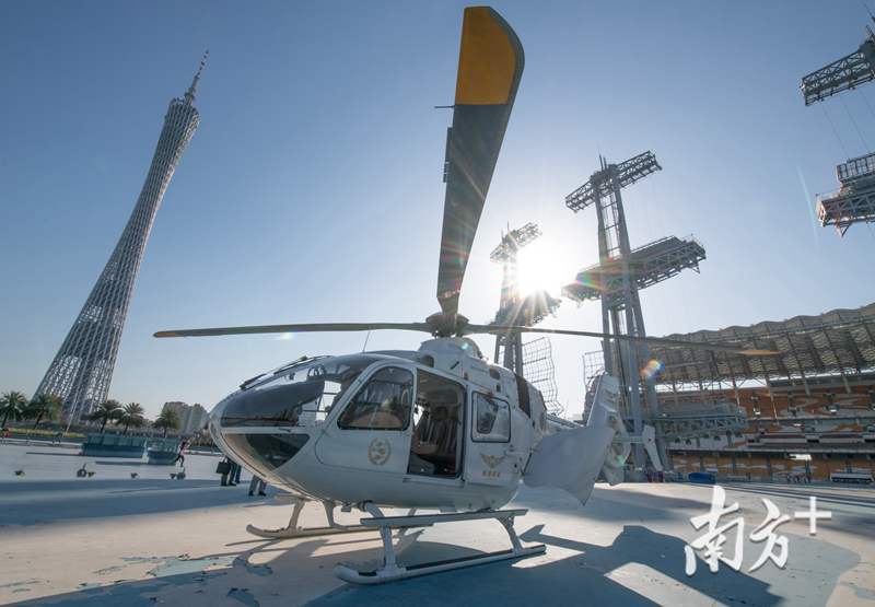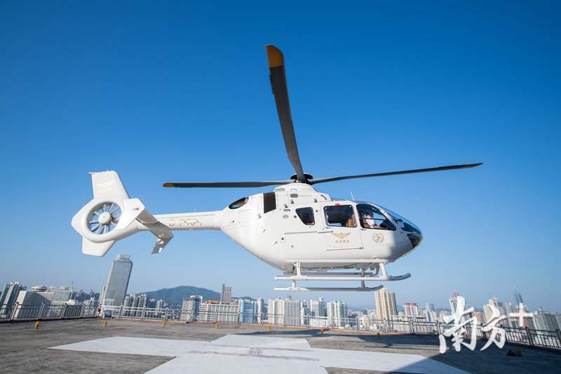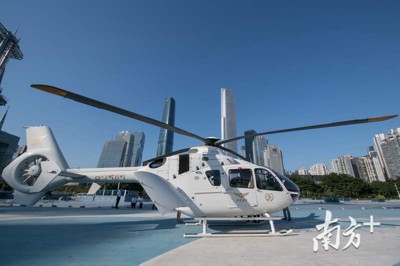 当天下午4点20分,伴随着巨大的轰鸣声,航空救援的直升机从珠江新城海心沙起飞,仅仅不到五分钟,就平稳降落在广东省人民医院主体楼25楼的停机坪。