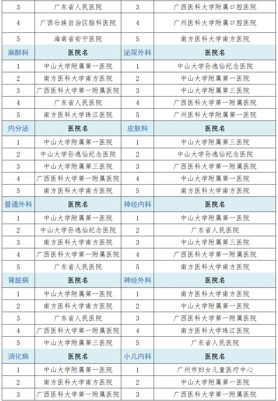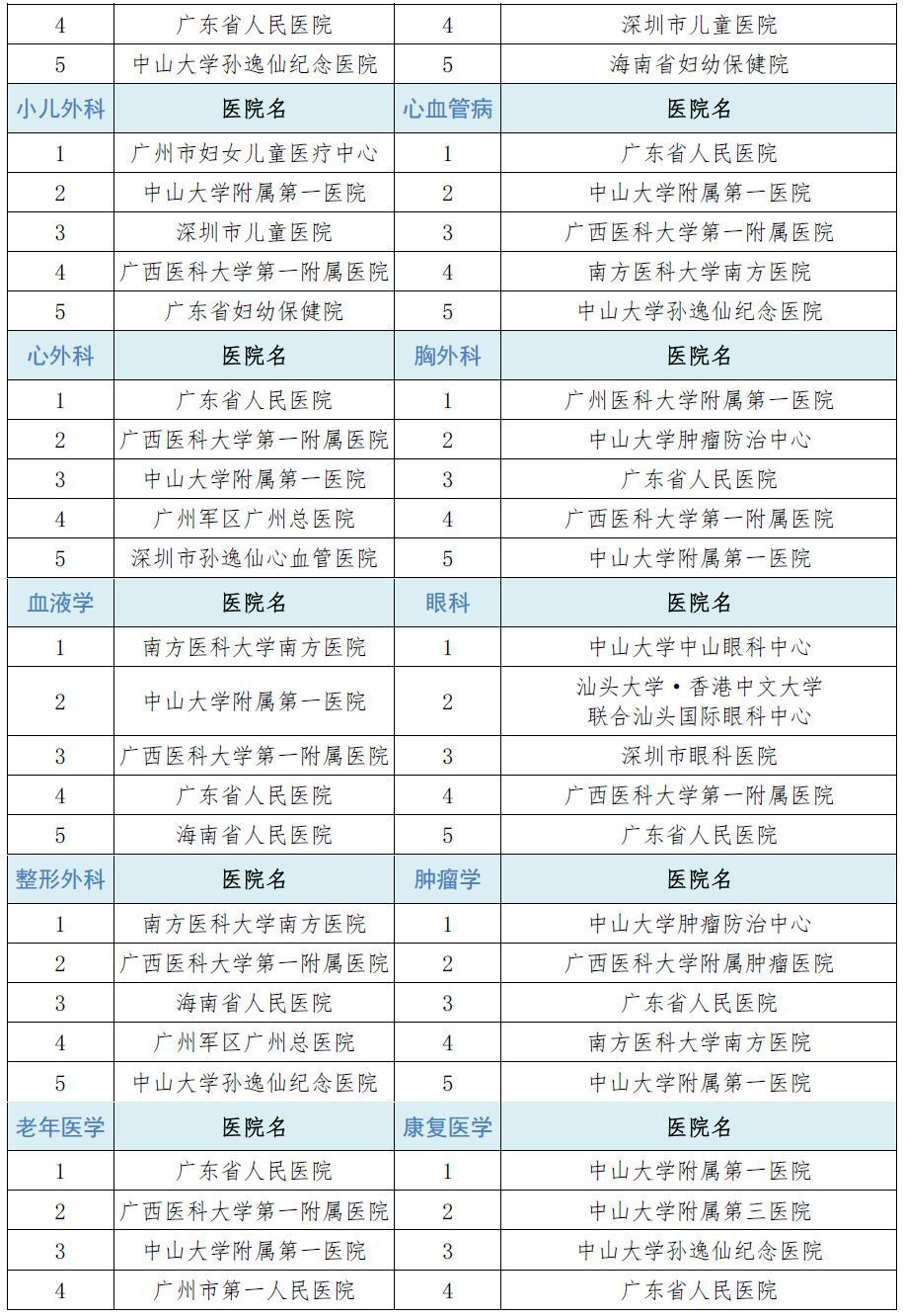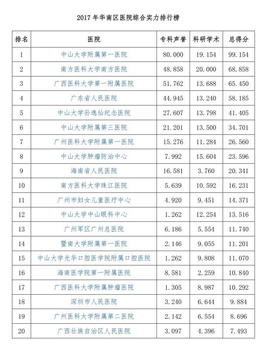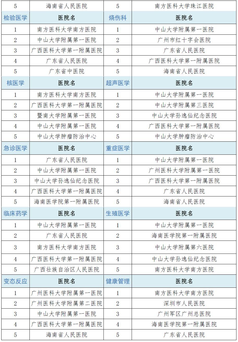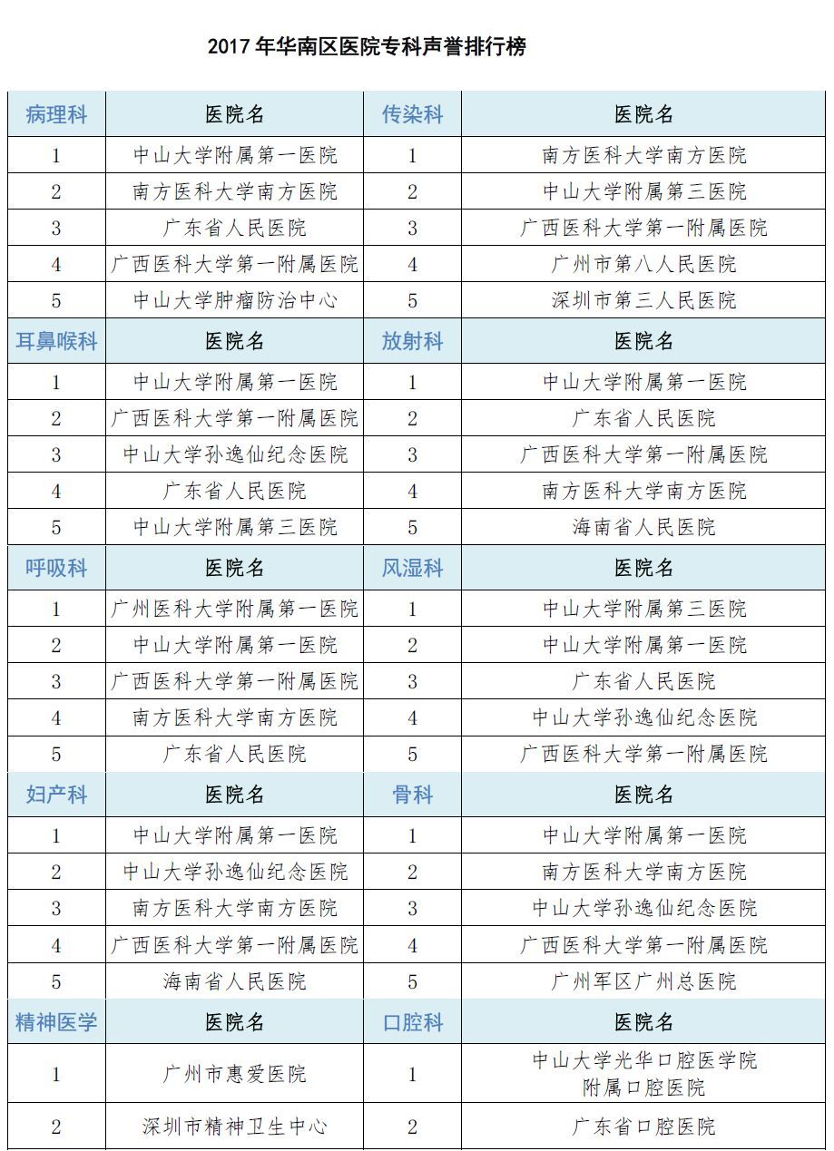 对咱广东地区乃至华南地区的患者来说,最实用的榜单过于下面的华南地区医院专科声誉排行榜!