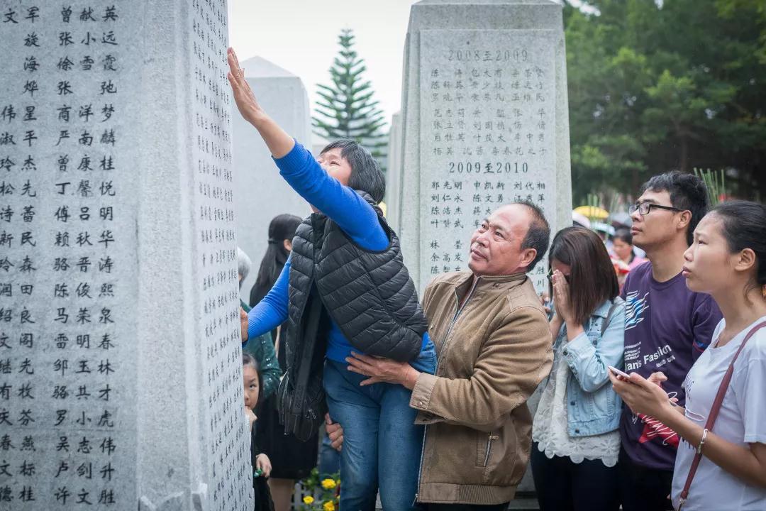 2018年4月,广东省器官捐献缅怀纪念活动在广州正果万安园的广东省红十字纪念园举行,一名捐献者的亲人被举起,伸出左手触摸纪念碑上的逝去亲人名字。
